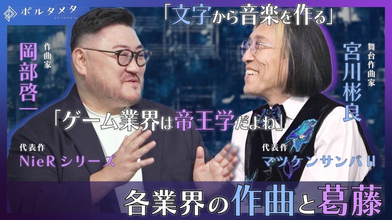 メディア・出演情報 【岡部啓一】ポルタメタ -portameta- チャンネル: 【ポルタメタ特別企画】NieRシリーズの岡部啓一氏×マツケンサンバⅡの宮川彬良氏 初のスペシャル対談 第1回